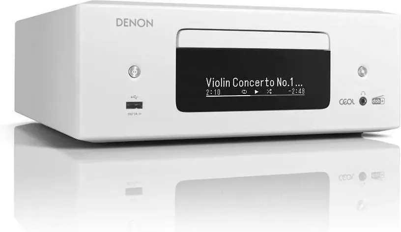 Denon RCD N12DAB оснащен большим количеством встроенных источников сигнала. Здесь имеются CD-плеер с быстрой загрузкой диска и практически бесшумно работающим механизмом, а также очень качественный FM/AM тюнер. Однако это является лишь частью списка возможностей данной модели, большинство из которых связаны с сетевым функционалом Denon RCD N12DAB. Здесь предусмотрено воспроизведение музыкальных файлов как с различных устройств (подключение к сети по Ethernet или Wi-Fi), а также пользование различными online-сервисами. Denon RCD N12DAB можно включить в беспроводную фирменную систему мультирум HEOS, а также соединять напрямую с устройствами, поддерживающими технологию AirPlay/AirPlay 2. Вход HDMI поддерживает возвратный аудиоканал ARC, что удобно при подключении к телевизору. На борту имеется MM-фонокорректор. Также в системе предусмотрен Bluetooth и имеется USB-вход для подключения портативных накопителей.