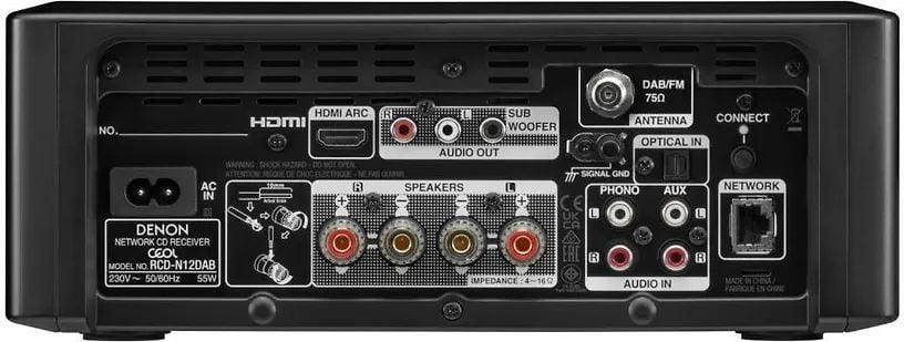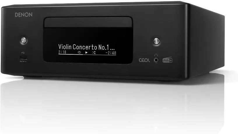 Denon RCD N12DAB оснащен большим количеством встроенных источников сигнала. Здесь имеются CD-плеер с быстрой загрузкой диска и практически бесшумно работающим механизмом, а также очень качественный FM/AM тюнер. Однако это является лишь частью списка возможностей данной модели, большинство из которых связаны с сетевым функционалом Denon RCD N12DAB. Здесь предусмотрено воспроизведение музыкальных файлов как с различных устройств (подключение к сети по Ethernet или Wi-Fi), а также пользование различными online-сервисами. Denon RCD N12DAB можно включить в беспроводную фирменную систему мультирум HEOS, а также соединять напрямую с устройствами, поддерживающими технологию AirPlay/AirPlay 2. Вход HDMI поддерживает возвратный аудиоканал ARC, что удобно при подключении к телевизору. На борту имеется MM-фонокорректор. Также в системе предусмотрен Bluetooth и имеется USB-вход для подключения портативных накопителей.