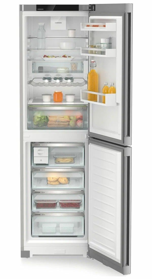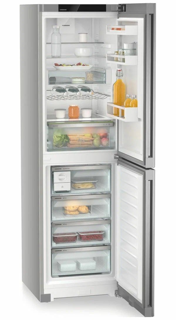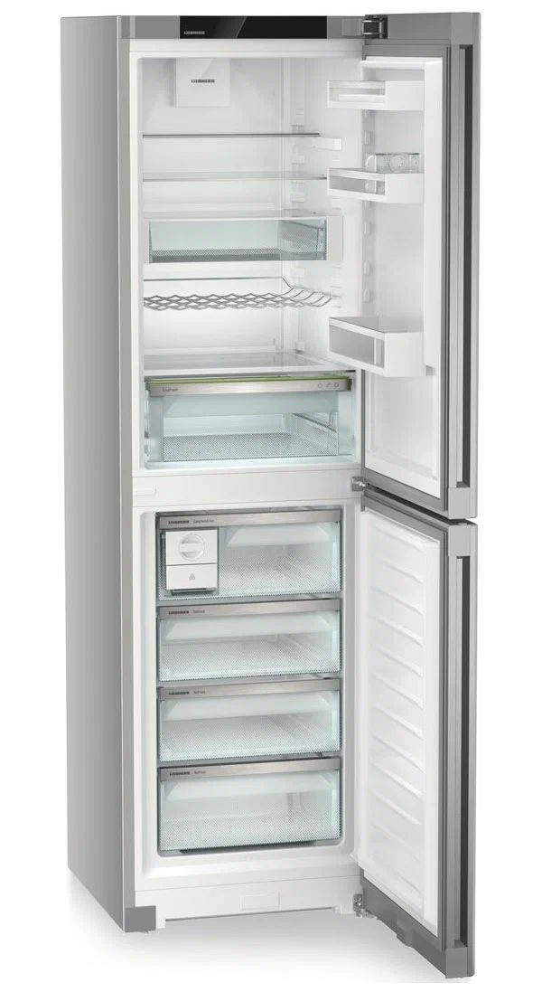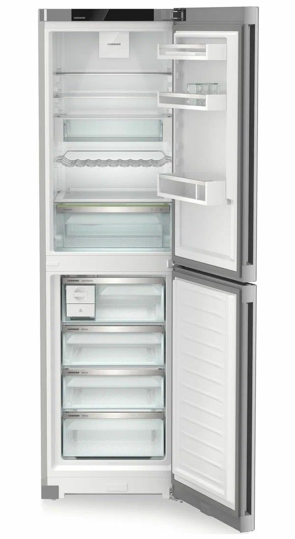 Liebherr CNsfc 573i-22 001 - двухкамерный холодильник с нижней морозильной камерой и элегантной отделкой SteelFinish. Он создан для тех, кто ценит сдержанный дизайн и практичность на каждый день, когда важно быстро найти нужные продукты, поддерживая порядок и чистоту внутри.