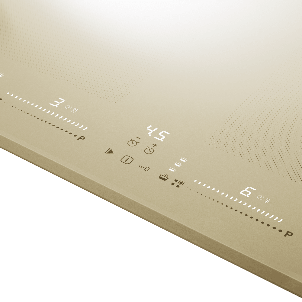 Поверхность выполнена из стеклокерамики: в бежевом цвете используется японская Nippon Glass с повышенной прозрачностью и стойкостью к царапинам; она легко очищается и остаётся прохладной вокруг посуды благодаря природе индукции. Таймер до 99 минут, три предустановленных режима (размораживание, подогрев/поддержание теплоты, сильный нагрев) и режим «Stop+Go» помогают гибко контролировать процесс.