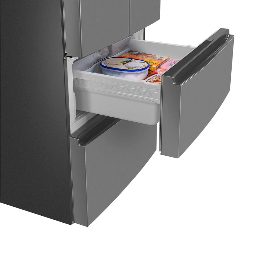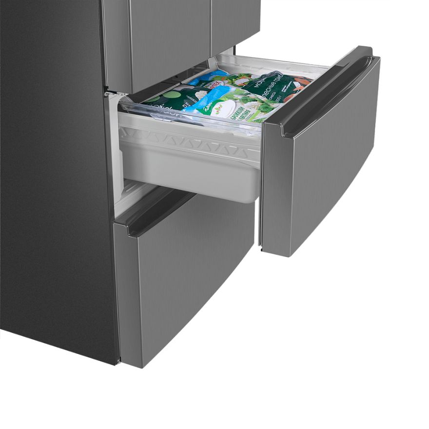 Холодильники с «французской дверцей» отличаются большой вместительностью и оригинальным дизайном. Выдвижные ящики морозильника превосходно удерживают холод и позволяют лучше разглядеть содержимое, чем распашные дверцы.