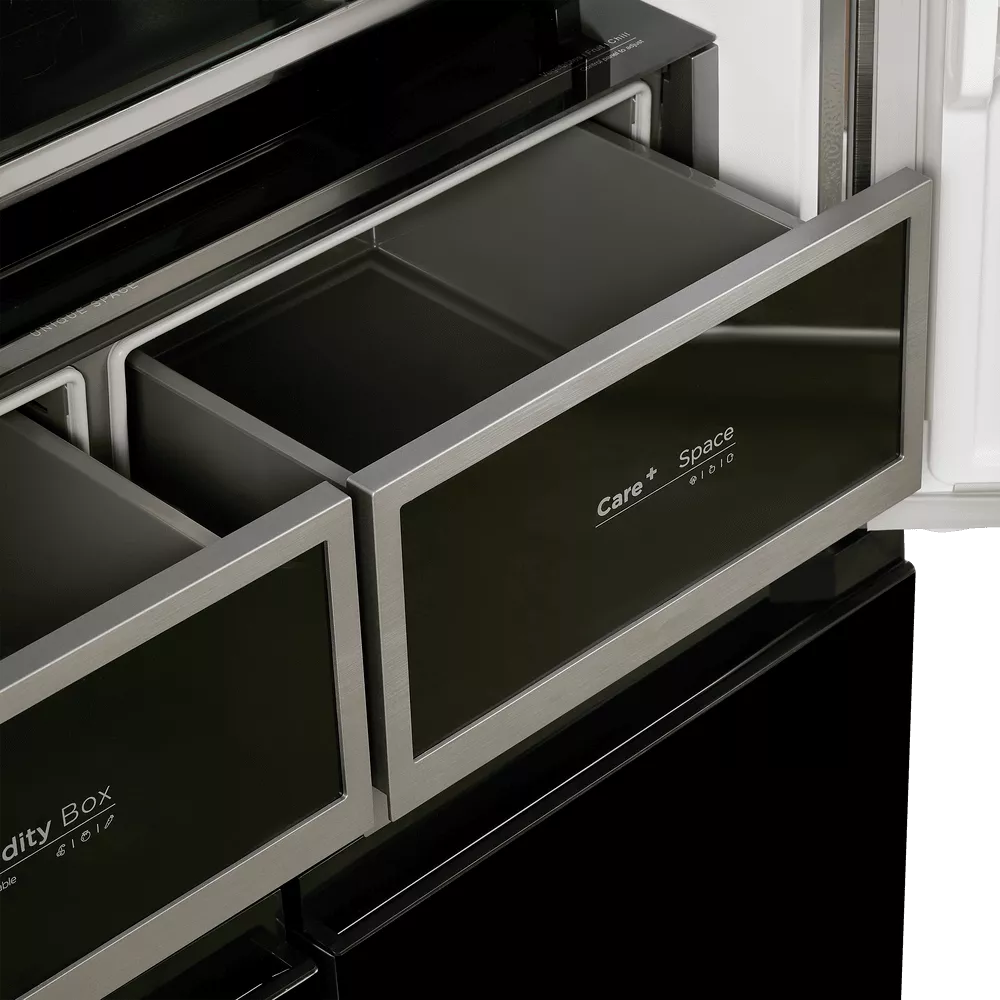 При внушительной общей вместимости модель остаётся комфортной в повседневном использовании: уровень шума 37 дБ подходит для кухни-гостиной, а сенсорная панель на фасаде даёт быстрый доступ к основным режимам — от «Быстрого охлаждения» до «Eco».
