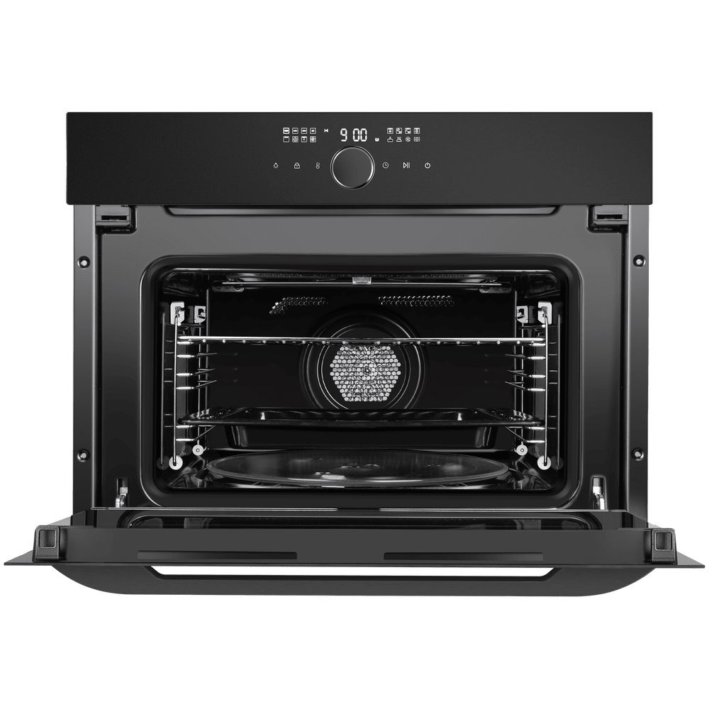 Модель поддерживает расширенный набор функций: 15 режимов работы включают гриль, комби-режимы с микроволнами, конвекцию и «Воздушную сушку» для бережного обезвоживания фруктов, овощей и трав при 60–100 °C. Уход упрощает гидролизная очистка и эмаль легкой очистки, отталкивающая жир и влагу.