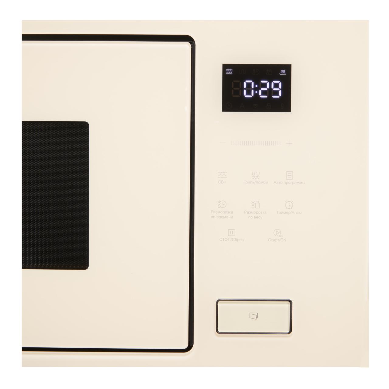 Встраиваемая микроволновая печь Korting KMI 827 GB — современная модель, выполненная в цвете бежевое стекло. Прибор имеет внутреннюю камеру без поворотного стола, которая выгодно отличается увеличенной площадью использования, а также удобством в уходе. Сенсорный дисплей «Cold White» удобен для выбора нужного режима. Управление прибором можно заблокировать, в данном случае дети не смогут воспользоваться микроволновой печью. Опция «Быстрый старт» запустит микроволновку на максимальной мощности на 30 секунд, что позволит разогреть небольшое количество еды. Режим автоматической разморозки сам определит необходимое время для оттаивания — просто положите продукт, выберите данный режим, выставите вес продукта и дальше устройство само сделает остальную работу.