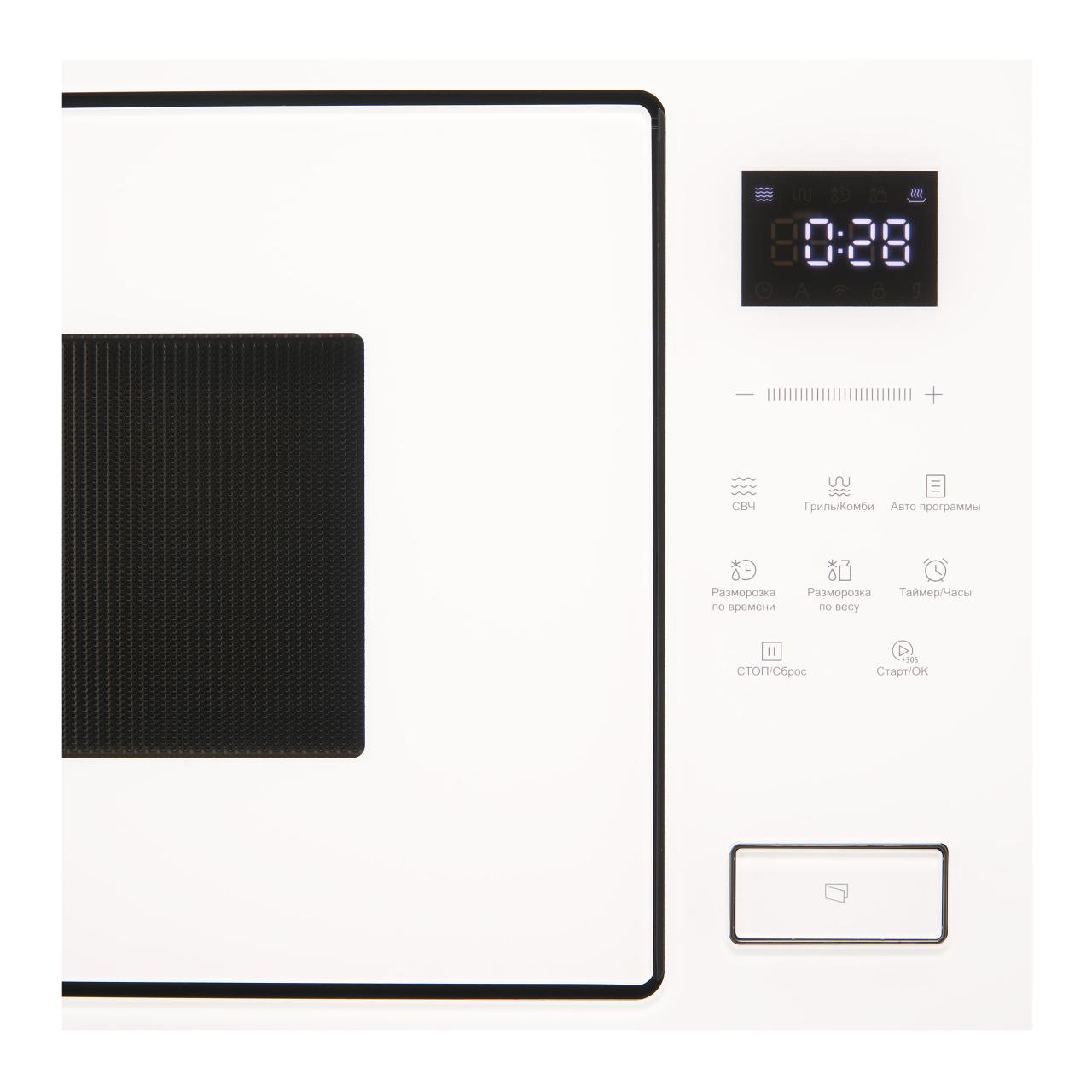 Встраиваемая микроволновая печь Korting KMI 827 GW — современная модель, выполненная в цвете белое стекло. Прибор имеет внутреннюю камеру без поворотного стола, которая выгодно отличается увеличенной площадью использования, а также удобством в уходе. Камера на 26 литров отлично подойдет для приготовления, разогрева или разморозки продуктов. Сенсорный дисплей «Cold White» удобен для выбора нужного режима. Режим автоматической разморозки сам определит необходимое время для оттаивания — просто положите продукт, выберите данный режим, выставите вес продукта и дальше устройство само сделает остальную работу.