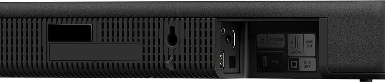 Подключение саундбара к телевизору обеспечивает HDMI-выход. Для подключения внешних устройств используется USB-порт 2.0 тип А. Присутствует оптический вход (Toslink). Беспроводную передачу данных обеспечивает модуль Bluetooth и Wi-Fi. Устройство поддерживает воспроизведение медиафайлов с цифровых носителей, поддерживает HDMI ARC / eARC. Предусмотрено размещение акустической системы на стене посредством крепления кронштейна, который входит в комплект. Потребляемая мощность составляет 50 Вт. Размеры модели — 6,4х95х12,8 см. Вес — 4,6 кг.