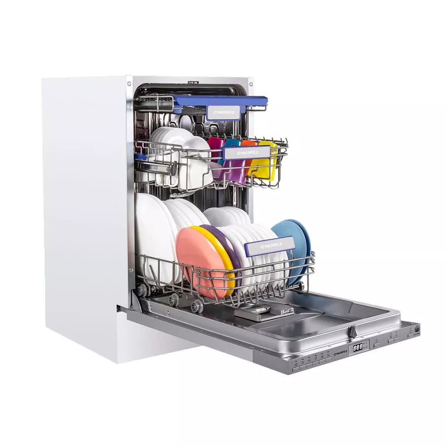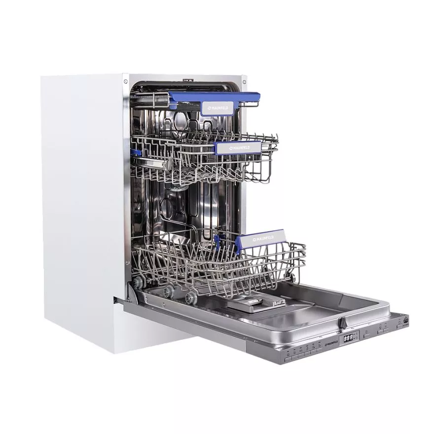 Узкая встраиваемая посудомоечная машина шириной 45 см. Благодаря использованию специально разработанных корзин и дополнительного выдвижного лотка для столовых приборов позволяет вымыть 10 комплектов посуды. Внутренняя поверхность выполнена из нержавеющей стали толщиной 0.6-0.8 мм, что обеспечит долгий срок службы при активном использовании.